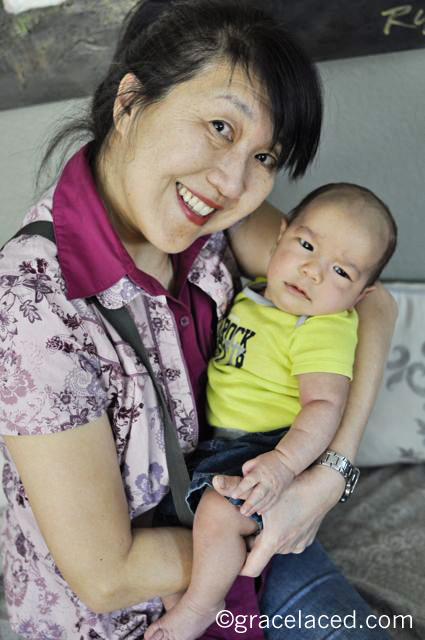 | 和女兒的老六(一個月大); 剛到第一天(5月26日),在女兒家 The first day, with my daughter's Number 6 (one month old), at her home |